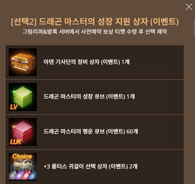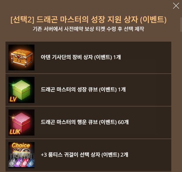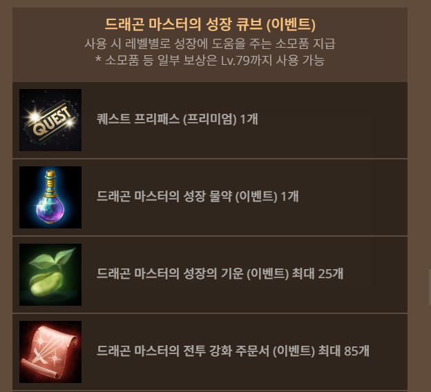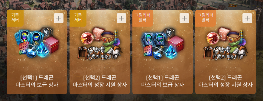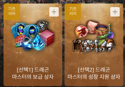기존서버 드래곤 마스터의 성장 지원 상자 구성품