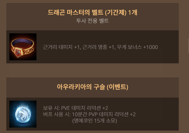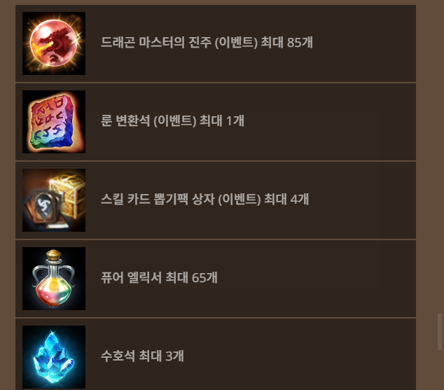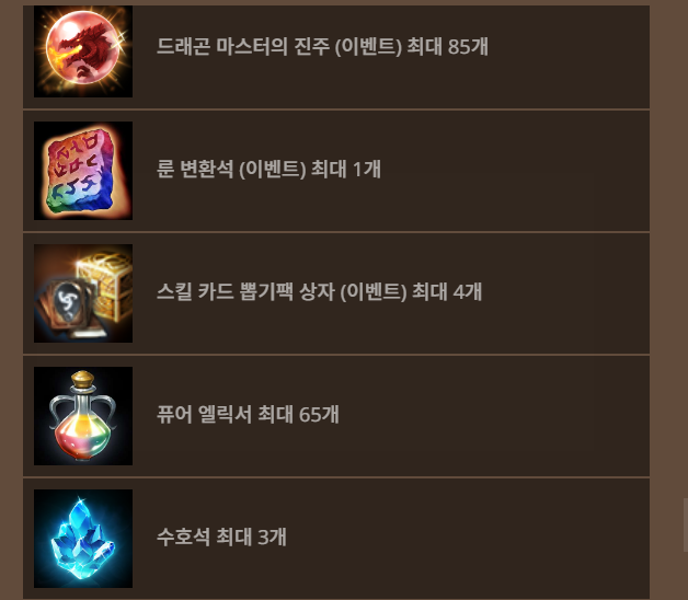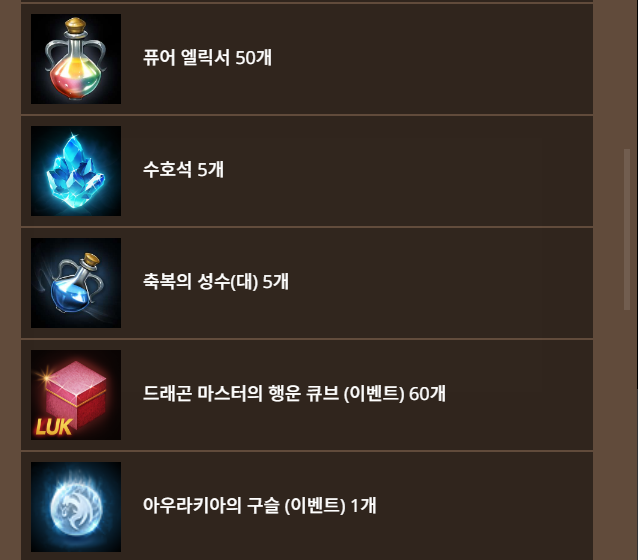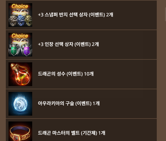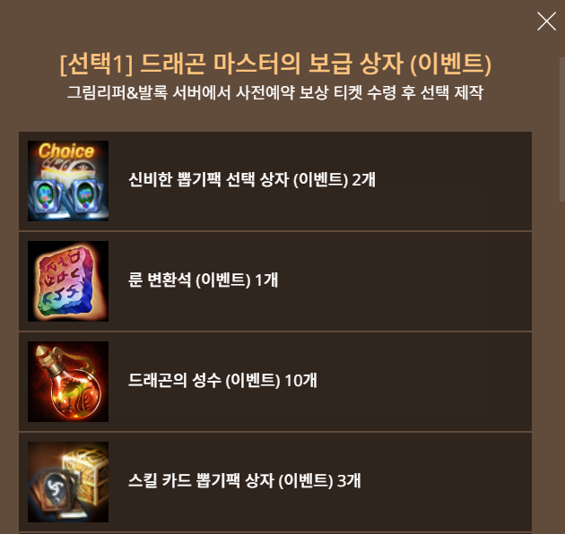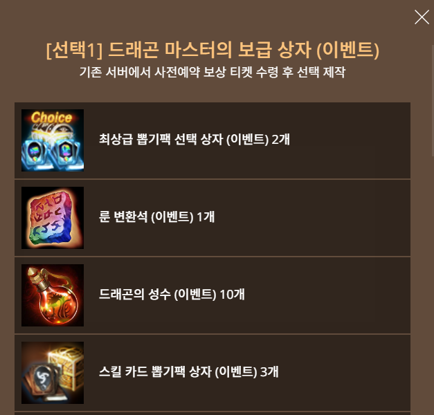 기존서버 드래곤 마스터의 보급 상자 구성품