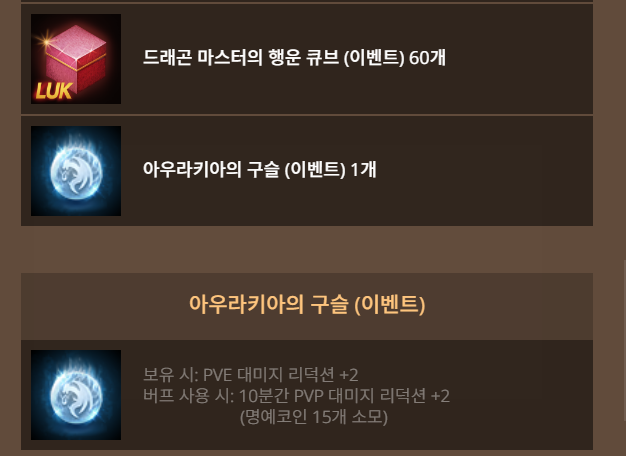 - 아우라키아의 구슬 1개