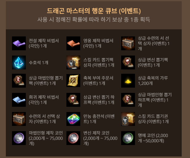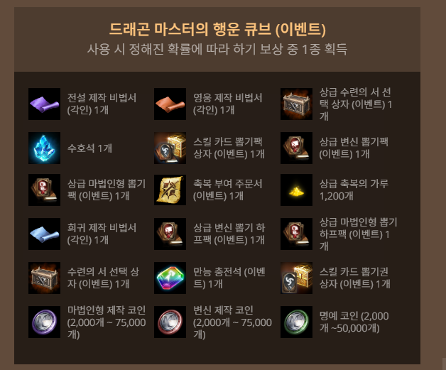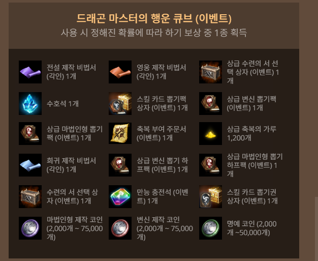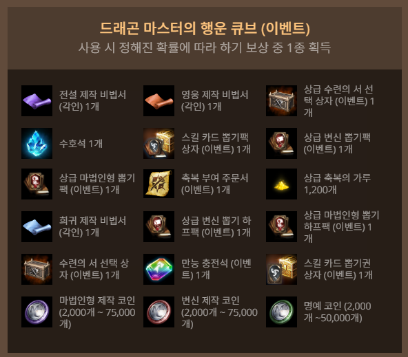 - 드래곤 마스터의 행운 큐브 60개