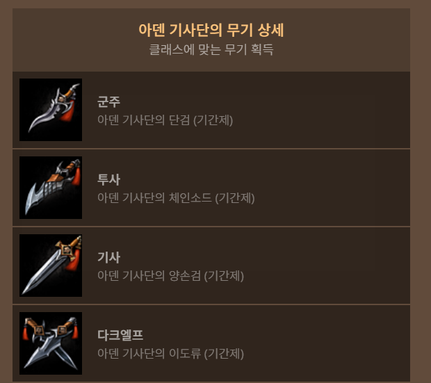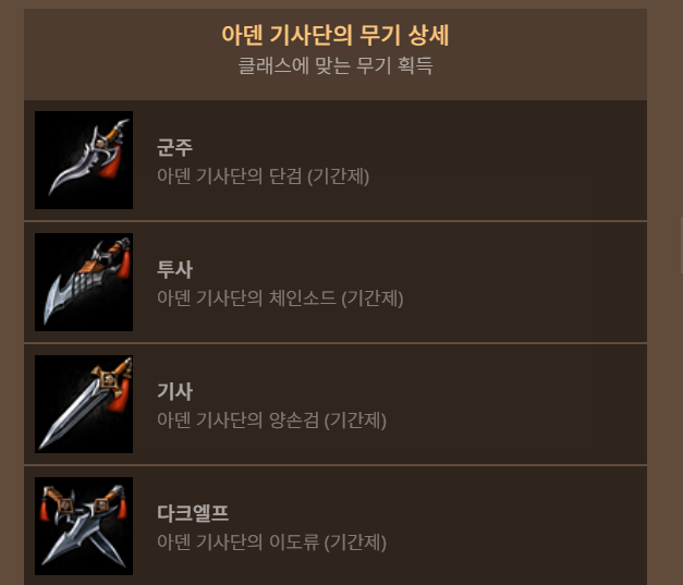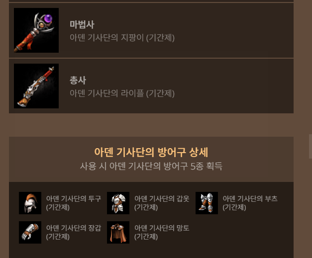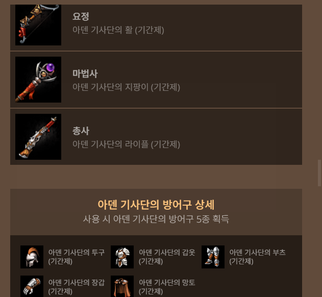 - 아덴 기사단의 장비 상자 1개